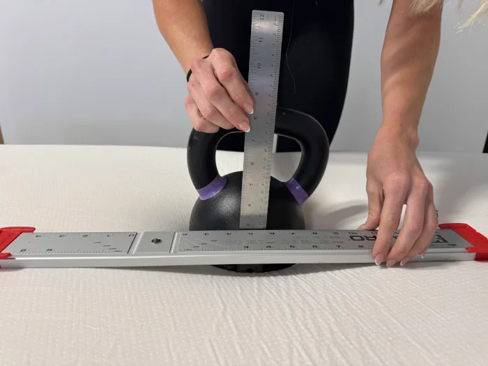 To measure a mattressโs sinkage depth, we take a weight and place it on the bedโs surface. We then measure the hip using a ruler. For the Polysleep Sierra, we recorded a sinkage depth of 2.75 inches, which is just a smidge lower than the average for every bed weโve tested, 3 inches. This moderate sinkage means this bed should have a balanced feel, not too doughy, but also not unyielding in its lift.
