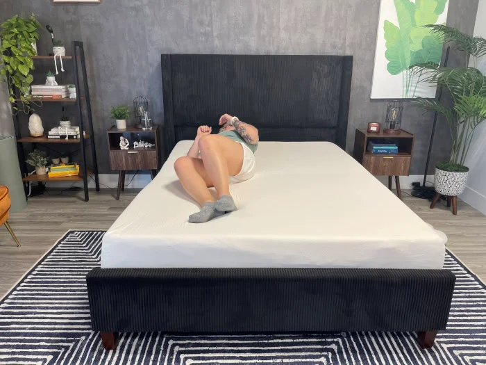 Our average-weight tester was Sosha Lewis. She admitted that she had mixed opinions about this mattress. โI still didnโt really like it, but I donโt necessarily feel a lot of pressure either,โ she said. She wasnโt a fan of the bedโs profile, and how it started out soft but immediately transitioned into the firmer support layer. She ultimately rated it at a 3.5/5 for side-sleeping pressure relief but added that this rating could go lower or higher depending on a sleeperโs personal preference.