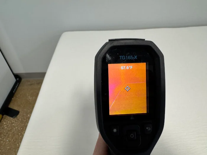 To test temperature regulation, we use a thermal gun to measure the surface temperature of a mattress in two instances: first, before anyone has touched the bed, and a second time after a tester has rested on it for about seven minutes. We generally see 6- or 7-degree increases as a sign of fairly good cooling and give them a score of around 4/5.