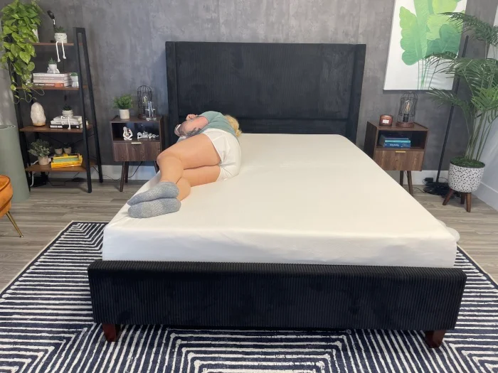 On her back, she thought it was a bit more comfortable. โMy hips felt aligned to my spine and my back was equally supported,โ she explained. She noted that those with a larger frame might experience more sinkage and possible discomfort but recommended the mattress for lightweight back sleepers. It earned another 4/5 rating for back-sleeping pressure relief.