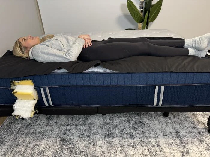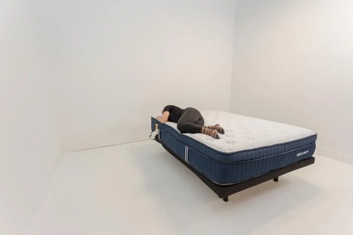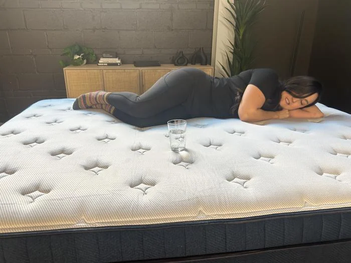 For pressure relief testing, we have each of our testers (representing lightweight, average-weight, and heavyweight sleepers) try out this mattress on their back and side. These are the two positions that require the most pressure relief.